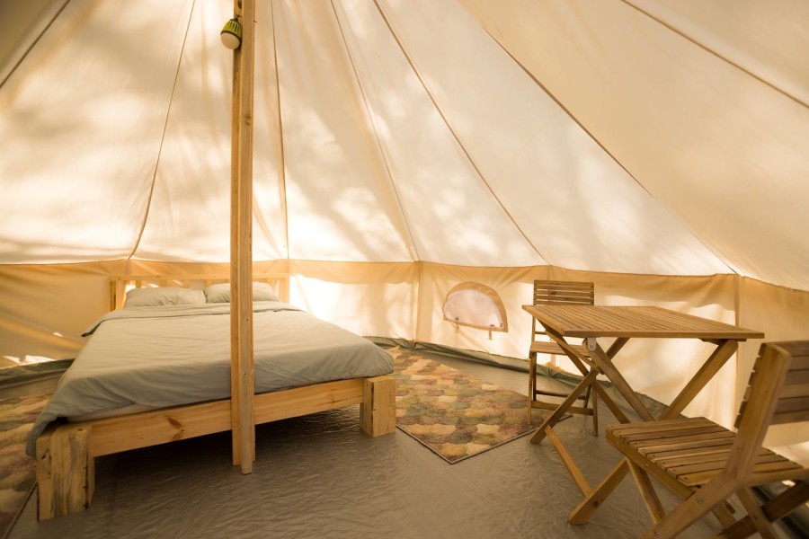 Уютные шатры для двоих в сосновом лесу. Внутри есть все необходимое: - двуспальная кровать + доп.место по запросу - стол и стулья - постельное белье - полотенца - электрический обогреватель-конвектор - розетки - свет Вы можете воспользоваться комфортным уличным туалетом и летним душем с горячей водой. Позавтракайте в большой открытой беседке вместе с другими гостями.