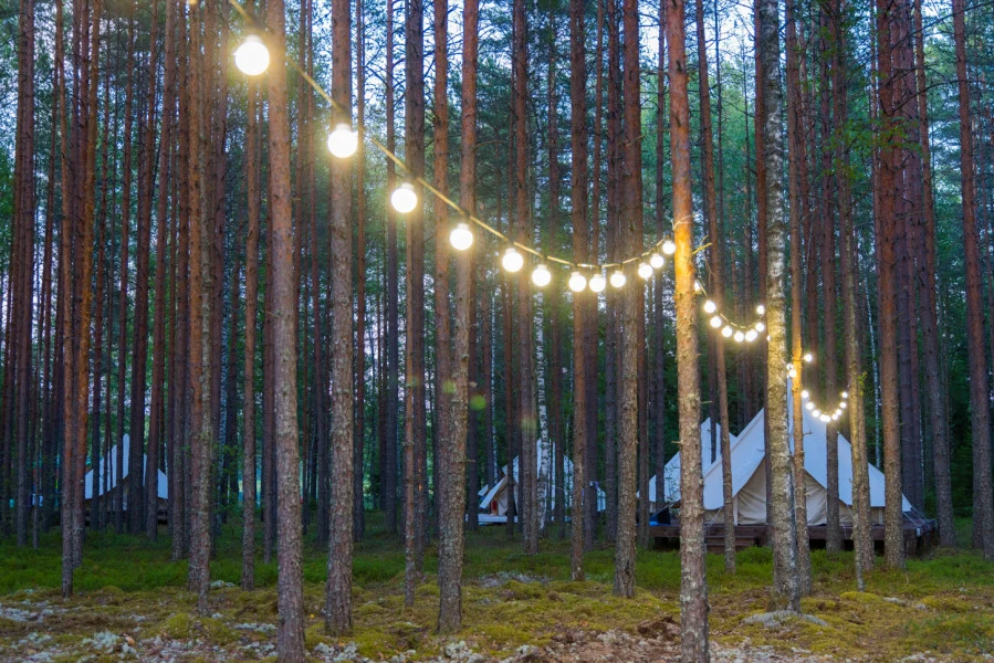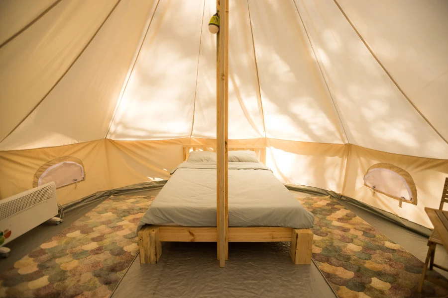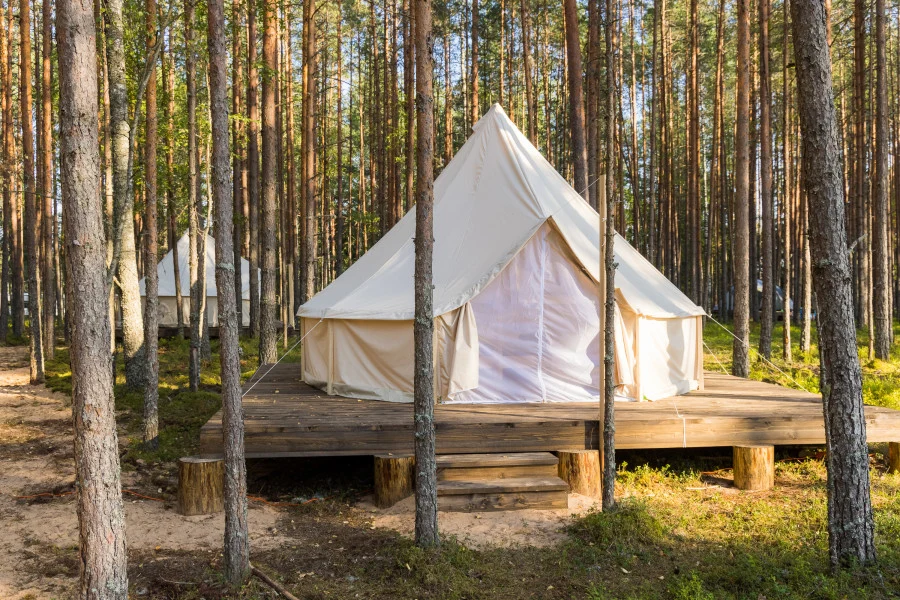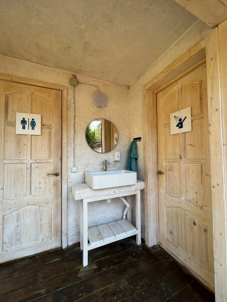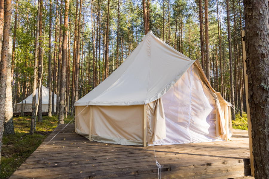 Уютные шатры для двоих в сосновом лесу. Внутри есть все необходимое: - двуспальная кровать + доп.место по запросу - стол и стулья - постельное белье - полотенца - электрический обогреватель-конвектор - розетки - свет Вы можете воспользоваться комфортным уличным туалетом и летним душем с горячей водой. Позавтракайте в большой открытой беседке вместе с другими гостями.