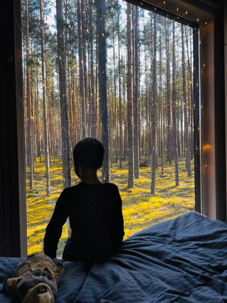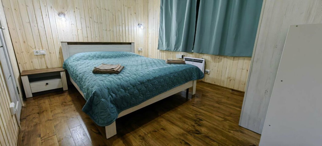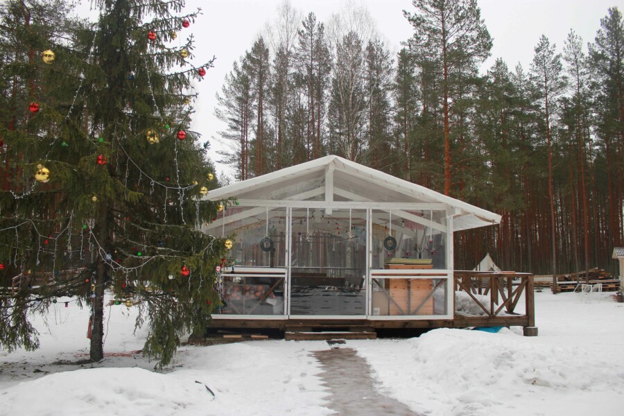 Четыре дома сдаётся на одну компанию до 26 взрослых человек и 4 детей на отдельном месте. В первом доме-отеле 6 номеров, в каждом номере - собственный душ и туалет (совмещенный), кухня-гостиная со всем необходимым для приготовления блюд и сервировки стола, а также экран с проектором, печь-камин и настольные игры. В двух других домах по две спальни, панорамные окна, двуспальные или раздельные кровати на ваш выбор, два санузла, тёплые полы, общая кухня-гостиная, набор посуды и столовых приборов. Ещё одно средство размещения - домик-студия с сауной. В распоряжении гостей большая утеплённая беседка с камином. Есть розетка для зарядки электромобиля.